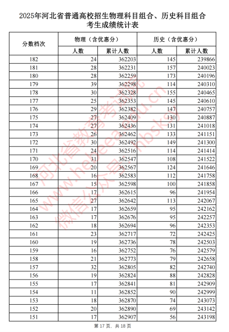 河北高考历史类成绩排名 一分一段表和位次对照表(2026参考)