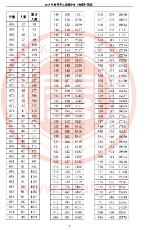 福建高考物理类一分一段表和位次对照表(2026参考)