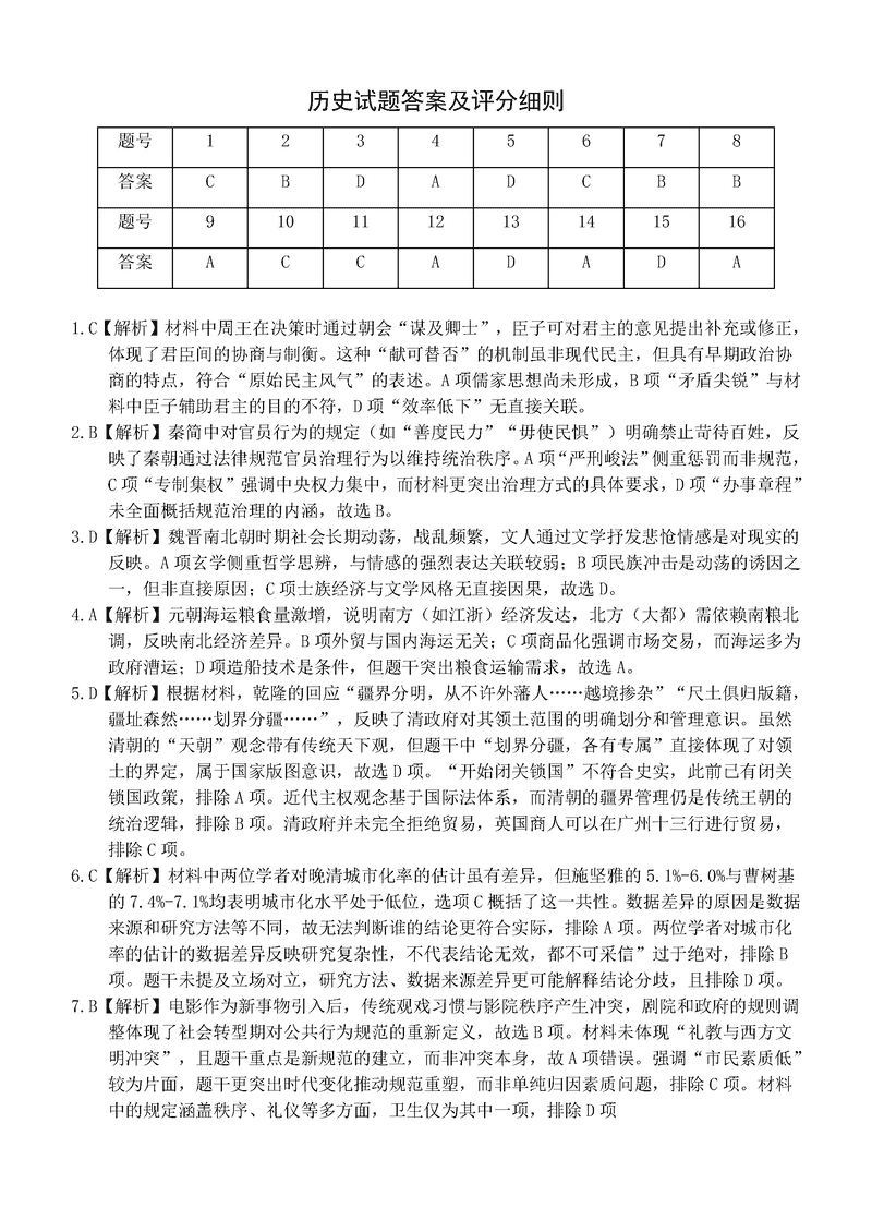 2025届广西邕衡教育名校联盟高三5月全真模拟测试历史试卷及参考答案