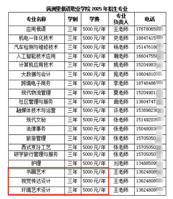 2025满洲里俄语职业学院艺术类学费多少钱一年-各专业收费标准
