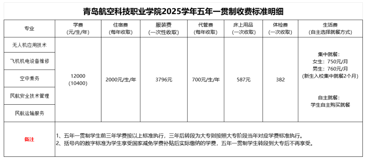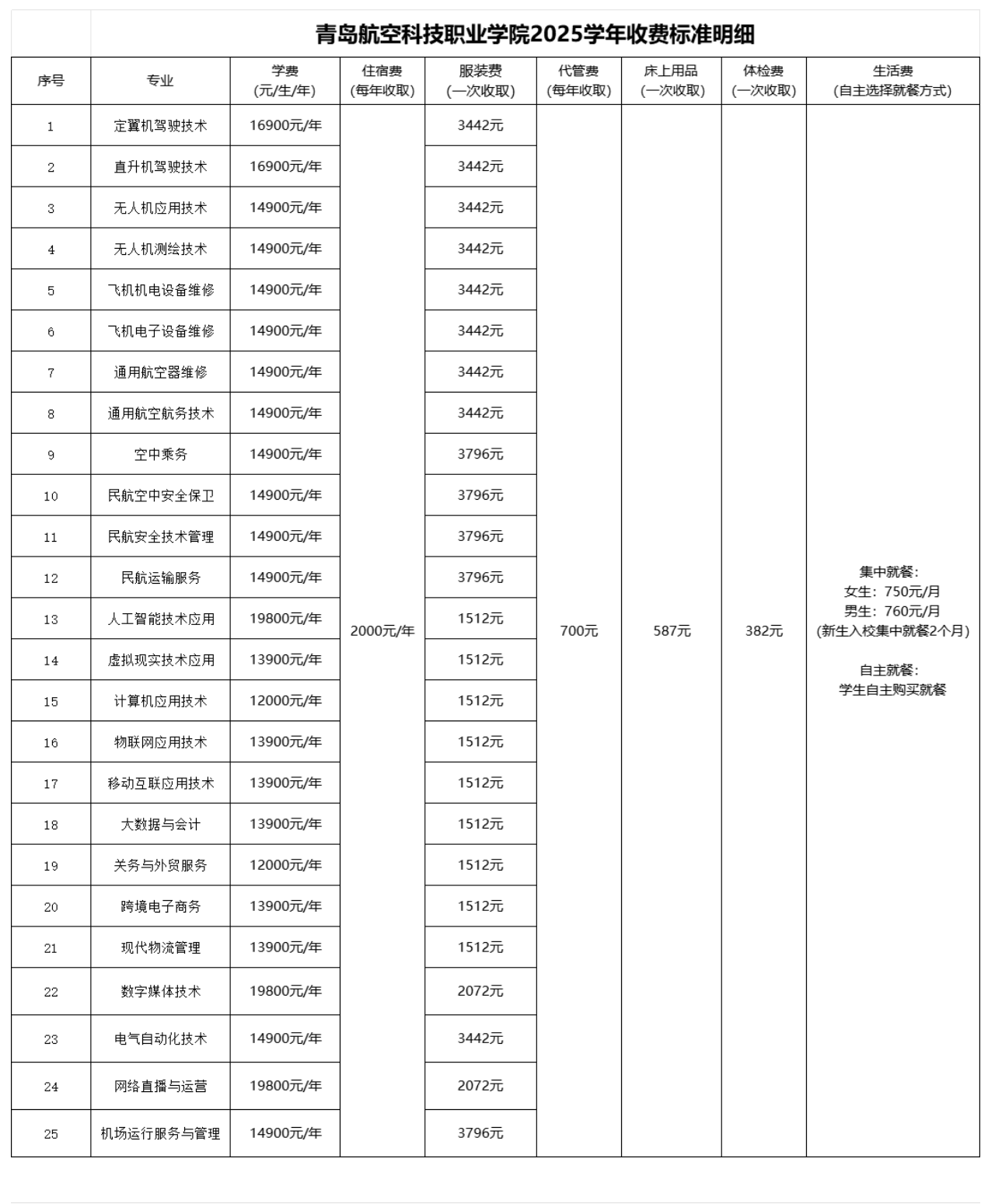2025青岛航空科技职业学院学费有12000、13900、14900、16900、19800元/生/年等不同标准。以下为大家整理的是各专业收费标准,希望对大家有所帮助,如有变动,以学校最新公布的信息为准。