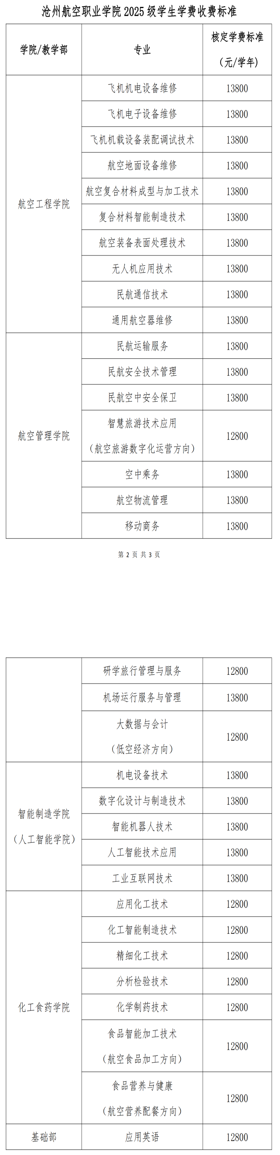 2025沧州航空职业学院学费有12800、13800元/学年等不同标准。以下为大家整理的是各专业收费标准,希望对大家有所帮助,如有变动,以学校最新公布的信息为准。