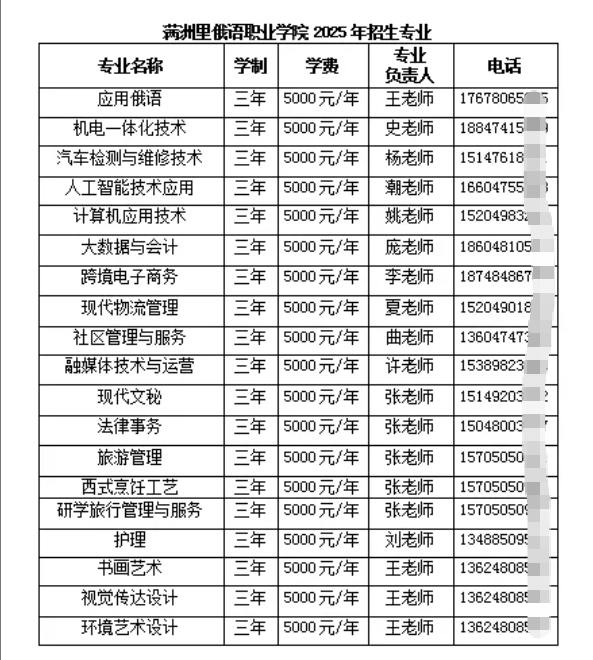 2025满洲里俄语职业学院学费为5000元/学年。以下为大家整理的是各专业收费标准,希望对大家有所帮助,如有变动,以学校最新公布的信息为准。