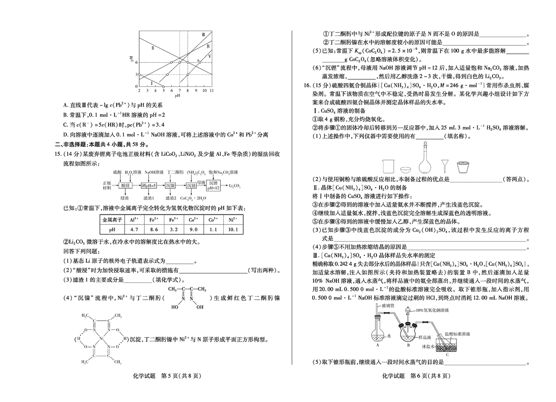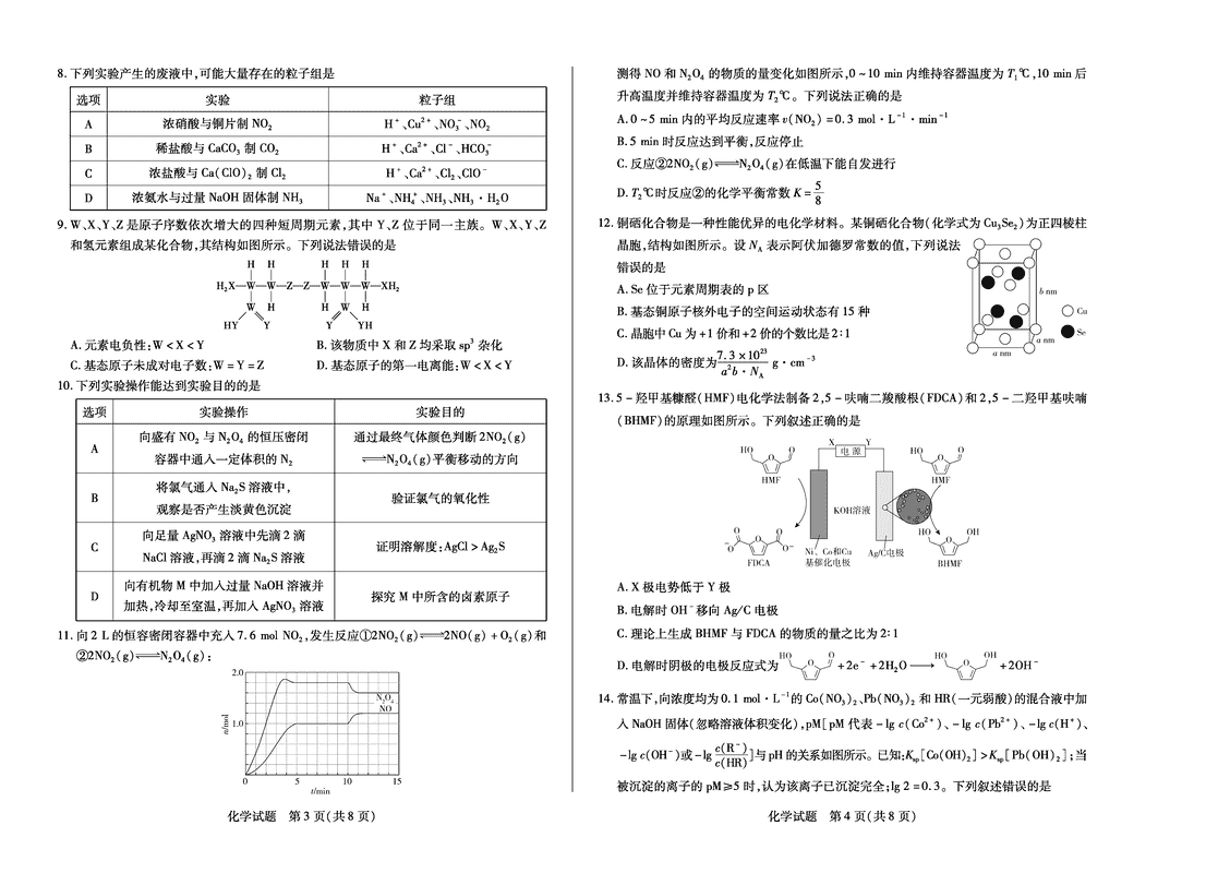 安徽天一大联考2026届高三8月秋季检测化学试卷及参考答案