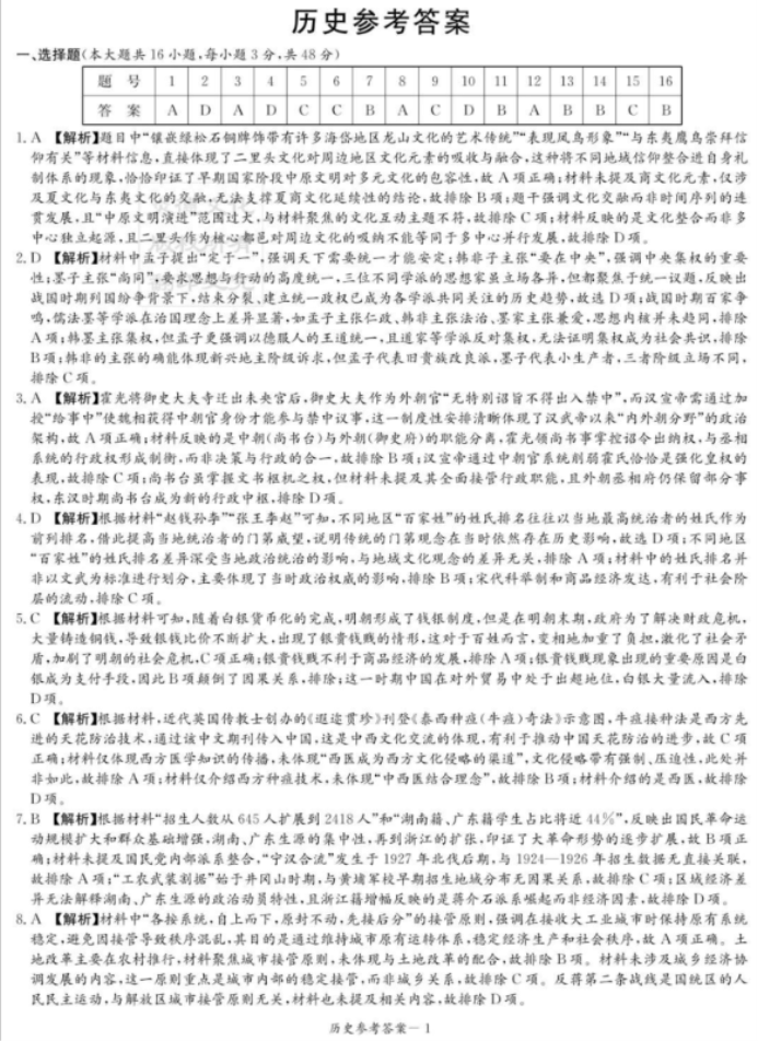 华大新高考联盟2026届高三9月教学质量测评历史试卷及参考答案