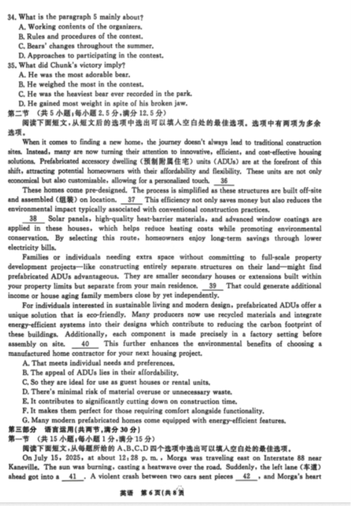2025年新高考山西、陕西两省高三4月联考英语试卷及参考答案