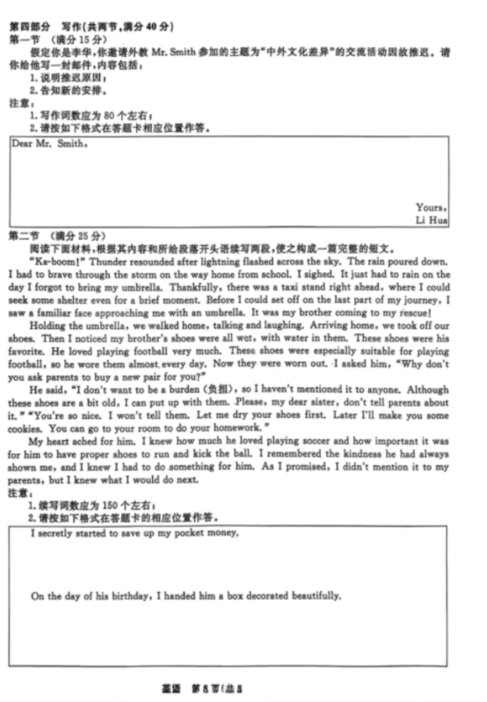 T8联考2024届山西高三第二次学业质评英语试卷及参考答案