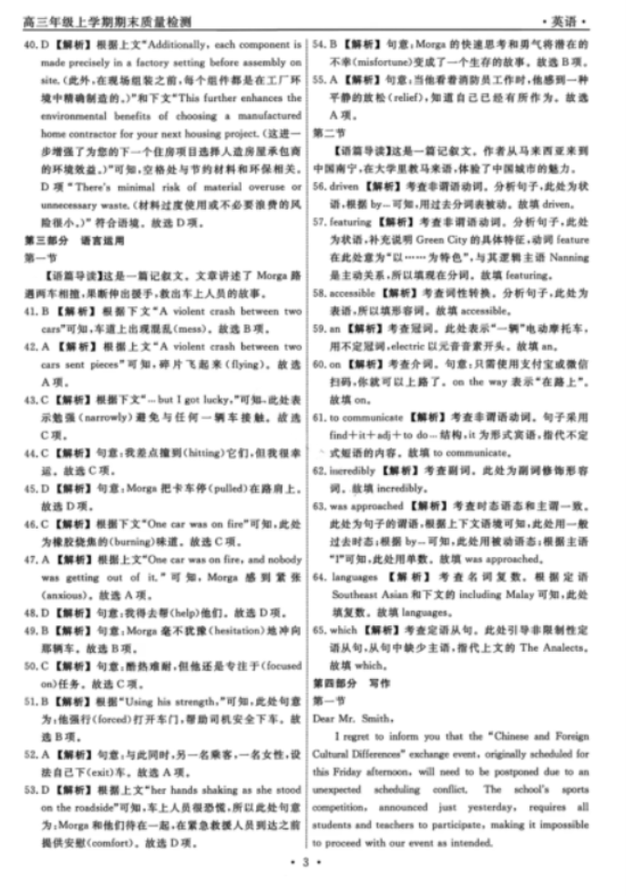 辽宁名校联盟2026年1月高三上期末联考质量检测英语试题及答案解析