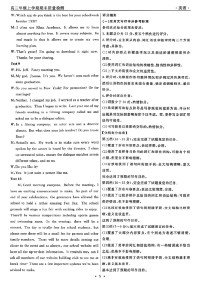 沈阳市2025届高三下教学质量监测(三)英语试卷及参考答案